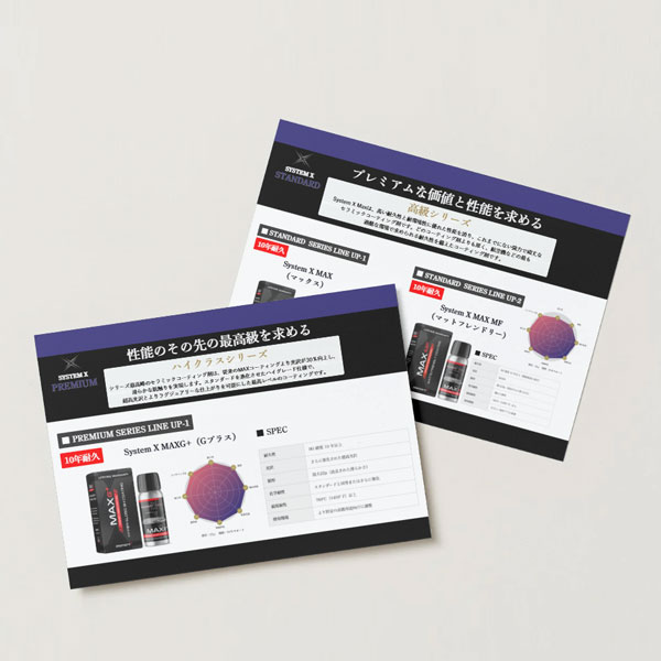 コーティング剤/コンパウンド/溶剤/副資材など、導入したいメニューに合わせて商品をお選びください。