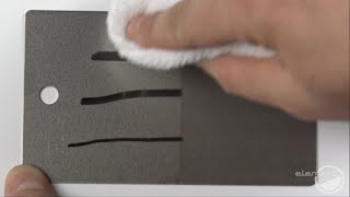 マーカーで落書きされた時のふき取りテスト。SystemX コーティングしたものとしていないものでマーカーで落書きされた時、拭き残しの差を調べました。