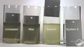 4枚のパネルを14%の塩水溶液に10時間浸しました。左から「未処理」「ワックス」「シーラント」「SystemX」